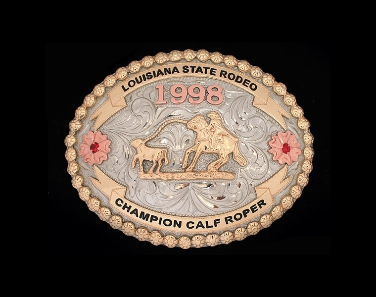 Our three-piece, hand-engraved custom belt buckles are the perfect prize for your event. These trophy buckles make for coveted awards, and are sure to make a statement.